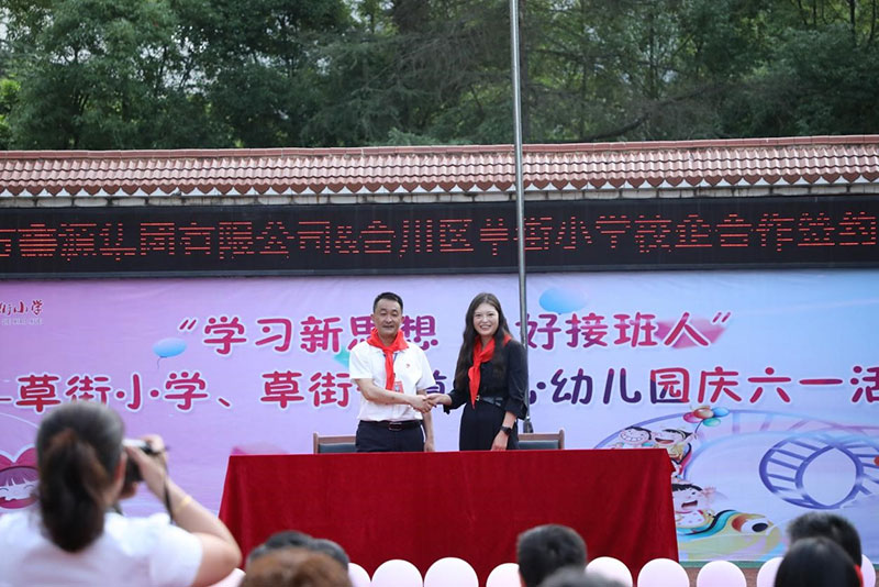 2023年5月31日,品牌與用戶關系部、人力行政部代表鑫源集團參加了合川區草街小學舉辦的“學習新思想,當好接班人”——草街小學慶六一主題活動?;顒又?,集團與草街小學簽署了新的校企合作協議,根據協議,未來將加大對草街小學的幫扶力度,雙方合作再深化、再升級。