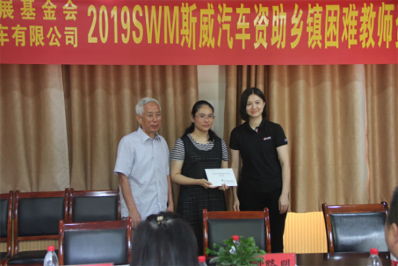 2019年9月10日,是第三十五個教師節(jié),在全社會向老師致敬的同時,重慶市璧山區(qū)福祿小學校的老師收到了一份特殊的教師節(jié)禮物。在2019SWM斯威汽車資助鄉(xiāng)鎮(zhèn)困難教師資助金發(fā)放活動中,來自璧山區(qū)福祿小學校的受助教師代表伍夏紅老師,領取了5000元的“SWM斯威汽車鄉(xiāng)鎮(zhèn)教師專項教育扶持資金”。