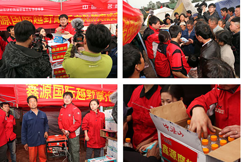 4月20日上午8時02分,四川雅安發生7.0級地震,東方鑫源控股有限公司董事長龔大興得知消息后,立即通知鑫源摩托越野救護隊做好準備,一小時后出發。攜帶鑫源越野車、物資以及鑫源人滿滿的愛心緊急趕往災區。